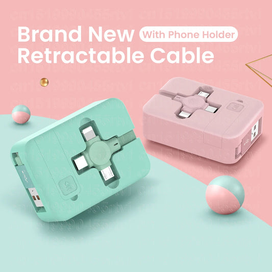 4 in 1 Retractable Cable with Phone Stand
